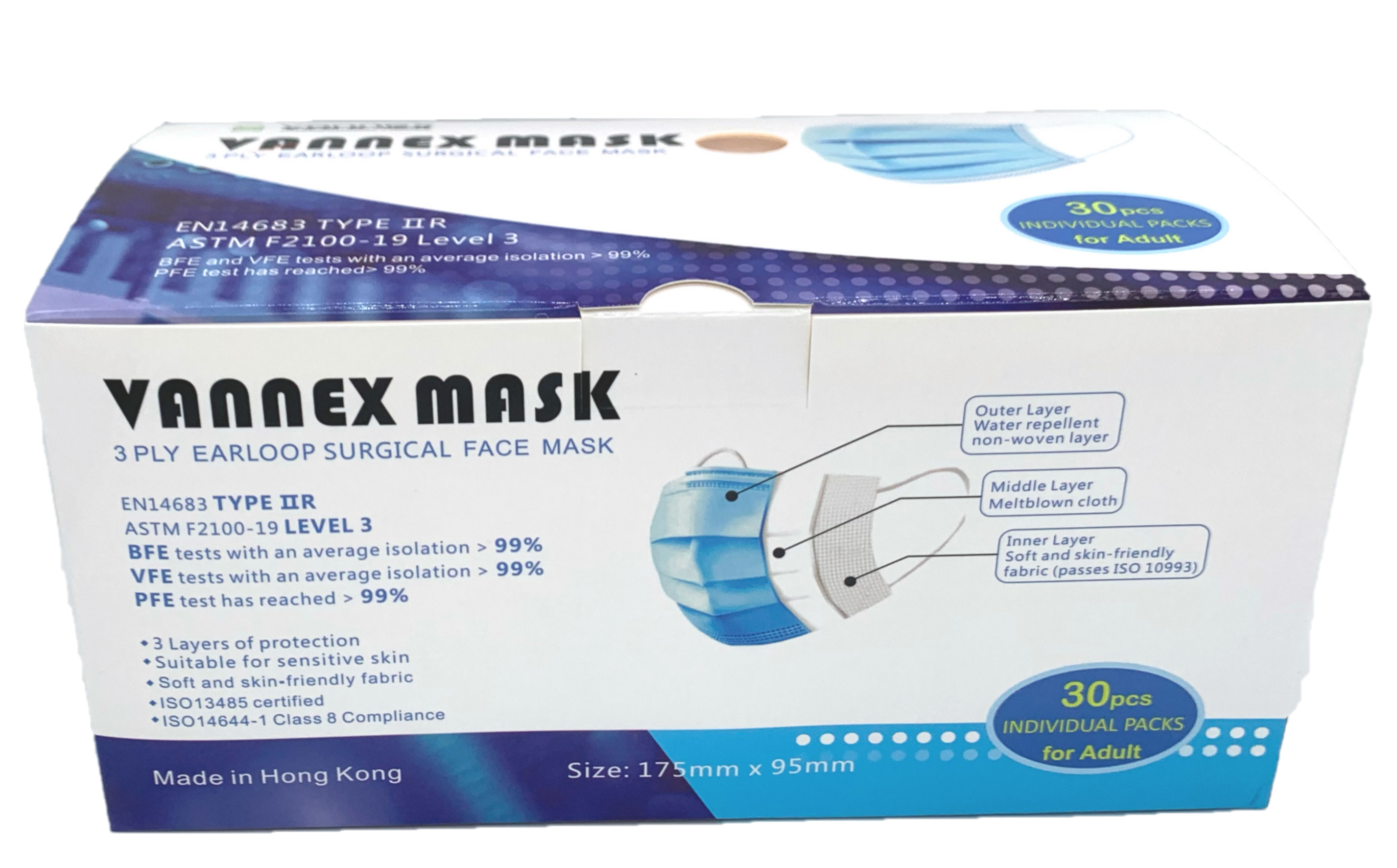 ASTM F2100-19 Level 3 、EN14683:2019 Type IIR